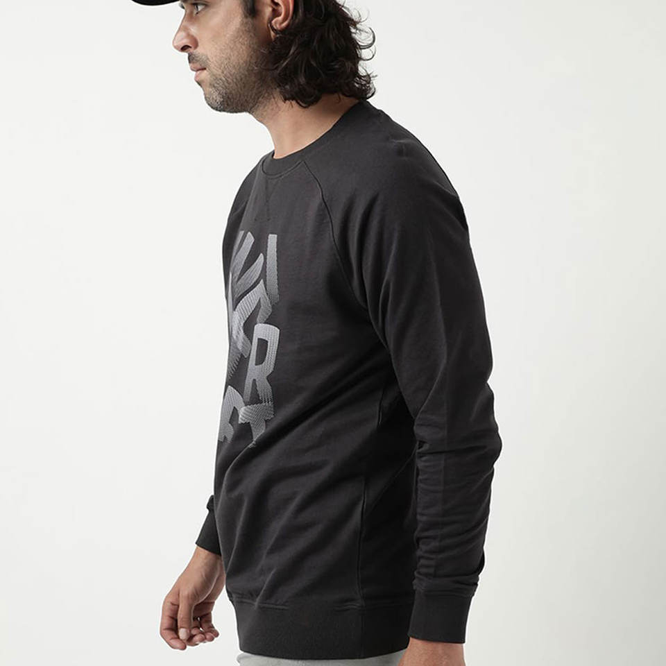 เสื้อสเวตเตอร์ผู้ชายพิมพ์ลายแบบกำหนดเองพร้อมกราฟิกตัวหนาและใส่สบายสำหรับเสื้อสเวตเชิ้ตผู้ชายแนวสตรีทเย็บสองชั้น