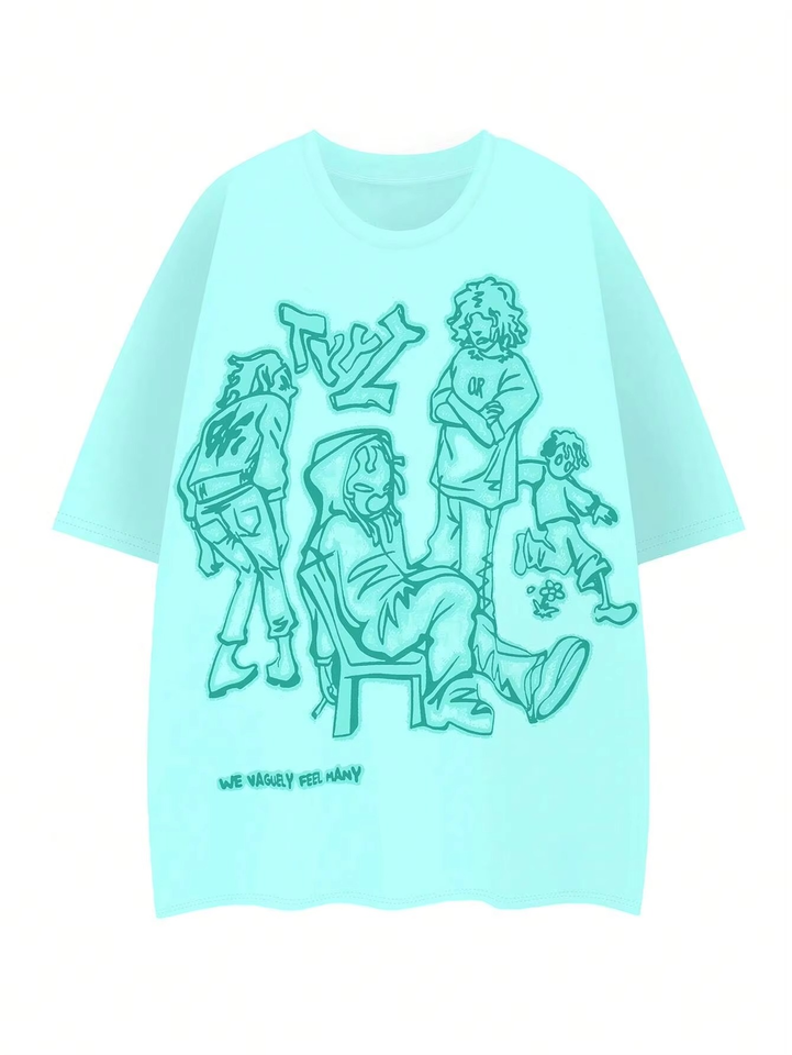 Custom Printed Men's Cotton T-Shirt Drop Shoulder Streetwear Style with Short Sleeve 100% Cotton Customized Printing