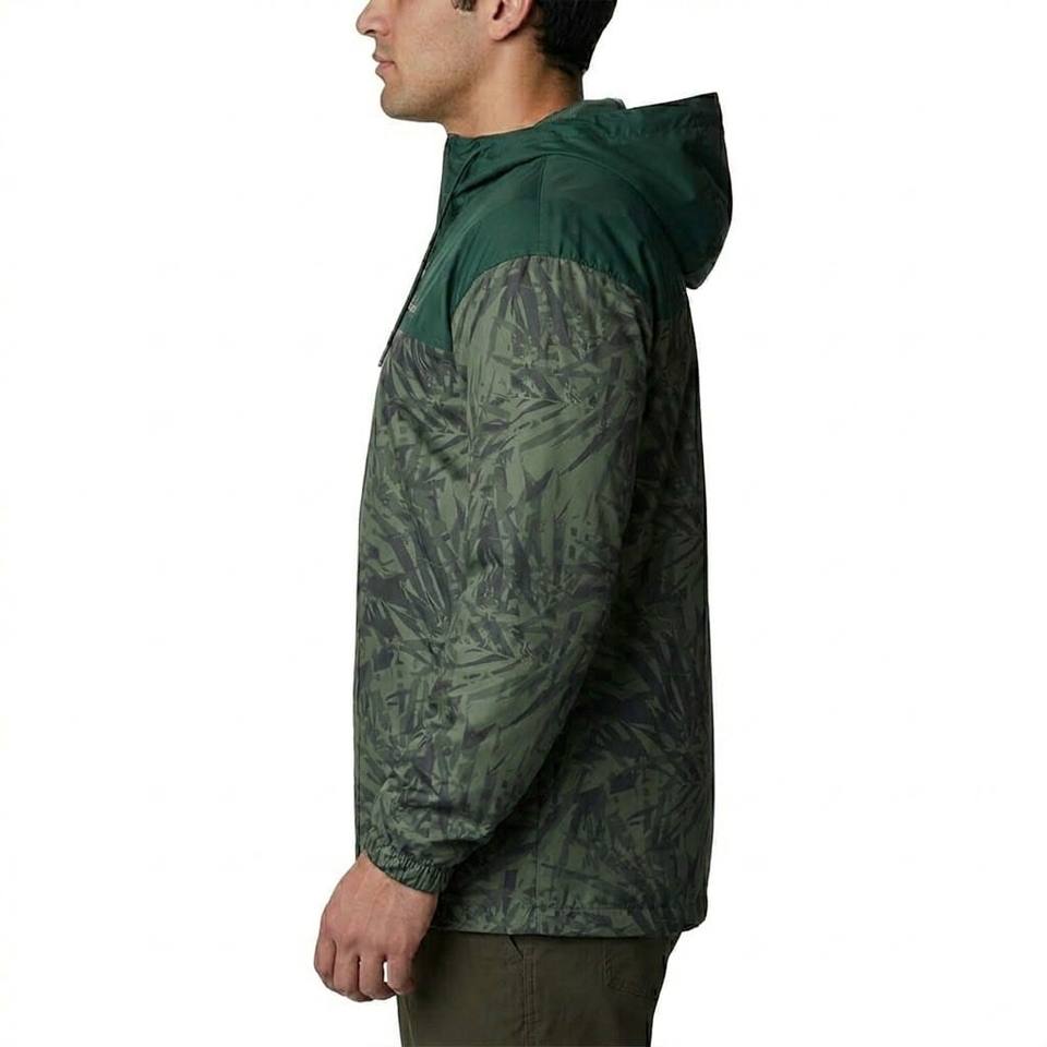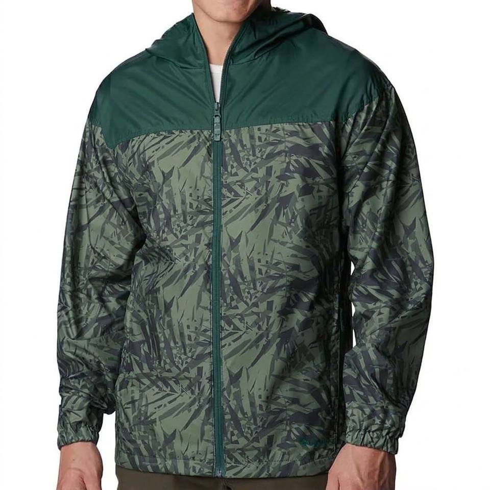 เสื้อแจ็คเก็ตกันลมแบบมีฮู้ดสีเขียวสำหรับผู้ชาย พิมพ์ลายตามสั่ง กันน้ำ ซิปเต็มตัว น้ำหนักเบา ดีไซน์ลายใบไม้
