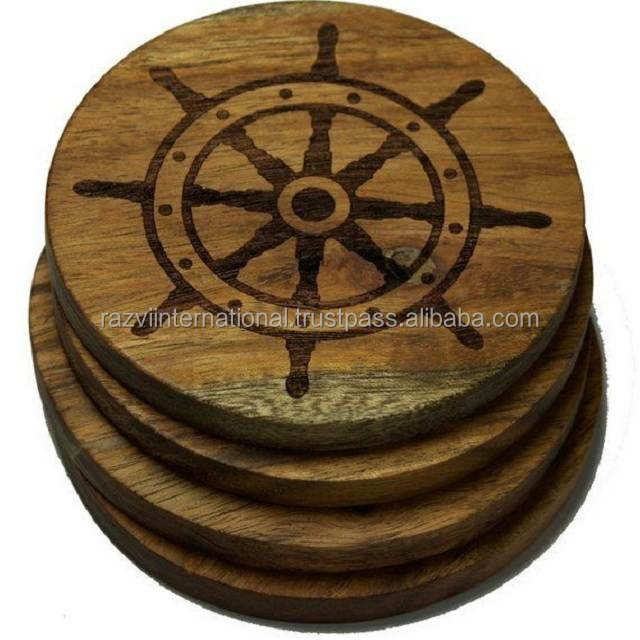 แผ่นรองและแผ่นรองจานไม้รองแก้วไม้ดีไซน์แบบทะเลพิมพ์ลายที่กำหนดเอง