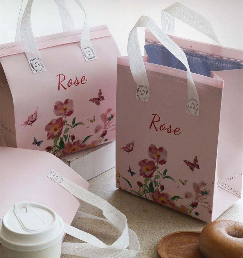 ถุงเก็บความร้อนแบบใช้แล้วทิ้ง พิมพ์ลายได้ตามต้องการ ผลิตจากผ้าไม่ถักทอ บุฟอยล์อะลูมิเนียม สำหรับใส่ชานม กาแฟ เค้ก ใช้สำหรับส่งอาหารและซื้อกลับบ้าน