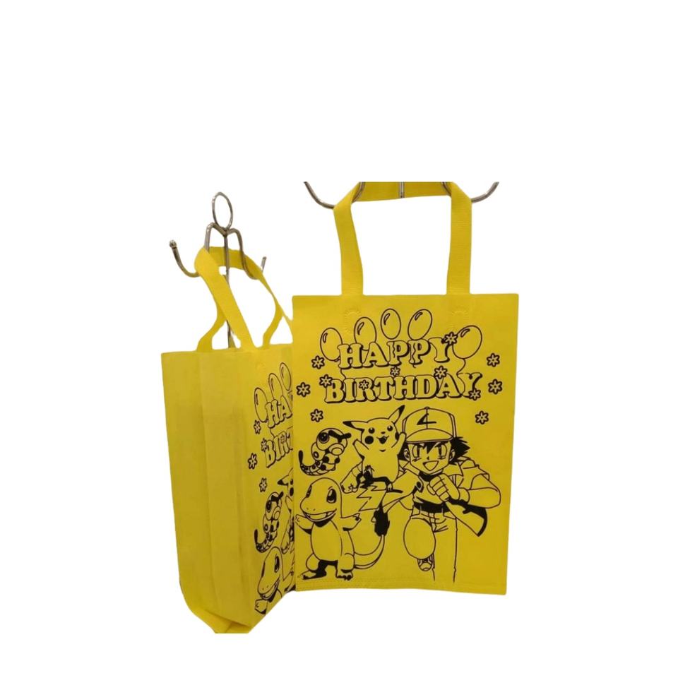 กระเป๋าหูหิ้วด้านข้างผ้าใยสังเคราะห์พิมพ์ลายแบบกำหนดเองกระเป๋าถือสปันบอนด์สีสันสดใสพร้อมดีไซน์ตัวละครวันเกิดสำหรับเป็นของที่ระลึกในงานปาร์ตี้