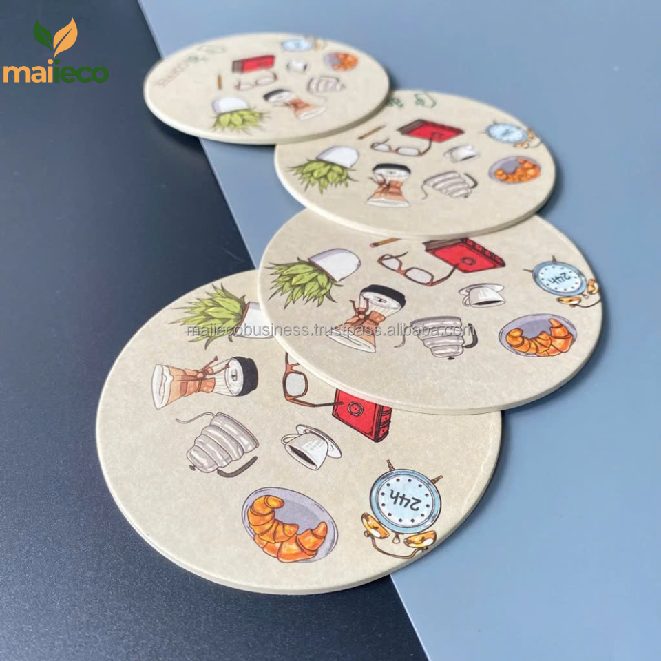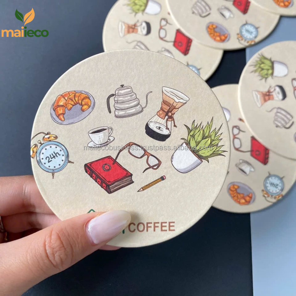 ถาดรองกระดาษพิมพ์ลายซับลิเมชันสไตล์คลาสสิกสำหรับโรงแรมและร้านอาหารบาร์สำหรับเครื่องดื่มกาแฟเบียร์ไวน์