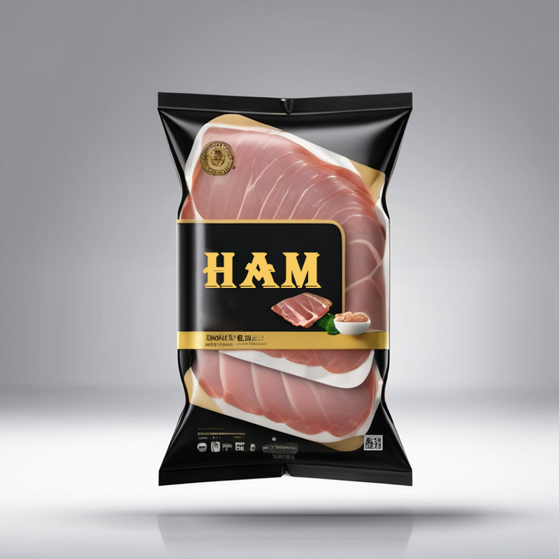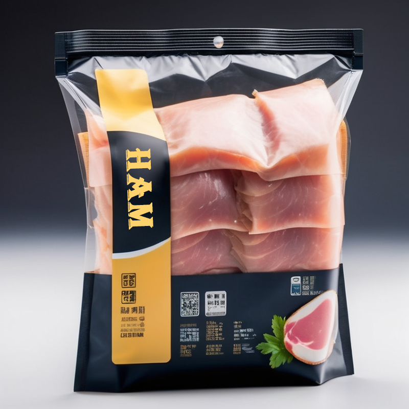 Custom Printed Plastic Bags Cured Meat Smocked Fish Pickled Eggs Ham Sausage Vacuum Food Packaging 3 Side Seal Ham Bags
