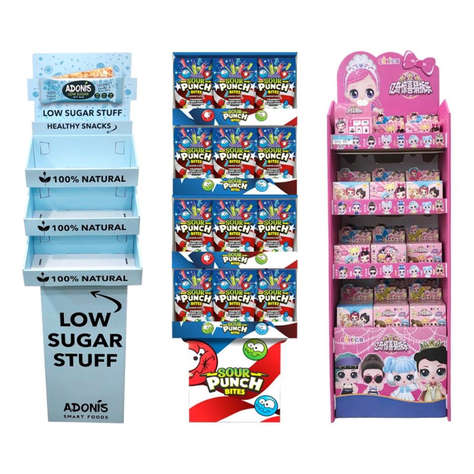 ชั้นวางสินค้ากระดาษแข็งสำหรับลูกอม อาหาร เครื่องดื่ม