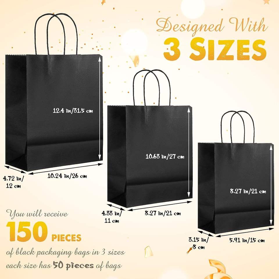 ถุงกระดาษคราฟท์สีดำพิมพ์โลโก้ตามสั่ง สำหรับใส่สินค้ากลับบ้าน/อาหารแบบนำกลับบ้าน พร้อมหูหิ้วรีไซเคิลได้