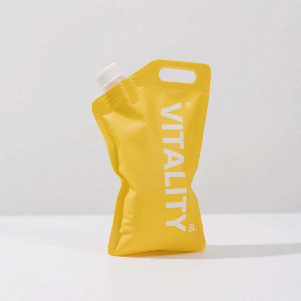 ถุงซิปล็อคแบบตั้งได้สีน้ำเงินพิมพ์ลายตามสั่ง พร้อมหูหิ้วพลาสติก ใช้งานง่าย มีจุกปิดกันรั่วซึม