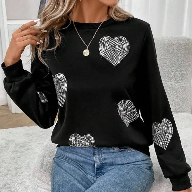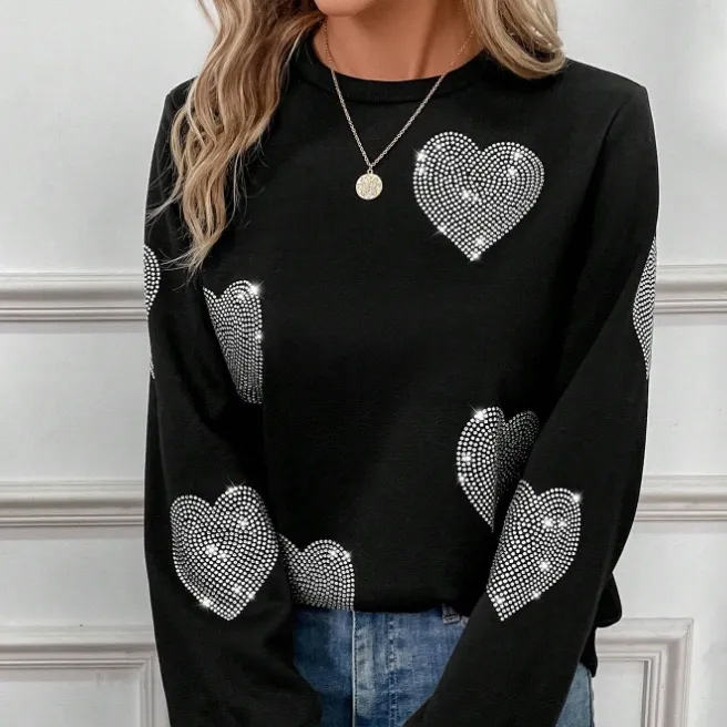 เสื้อสเวตเชิ้ตพิมพ์ลายตามสั่ง ประดับด้วยคริสตัล สำหรับผู้หญิง สีดำ ผ้าฝ้ายฟลีซ เหมาะสำหรับใส่ในฤดูหนาว พร้อมโลโก้ด้านหน้า