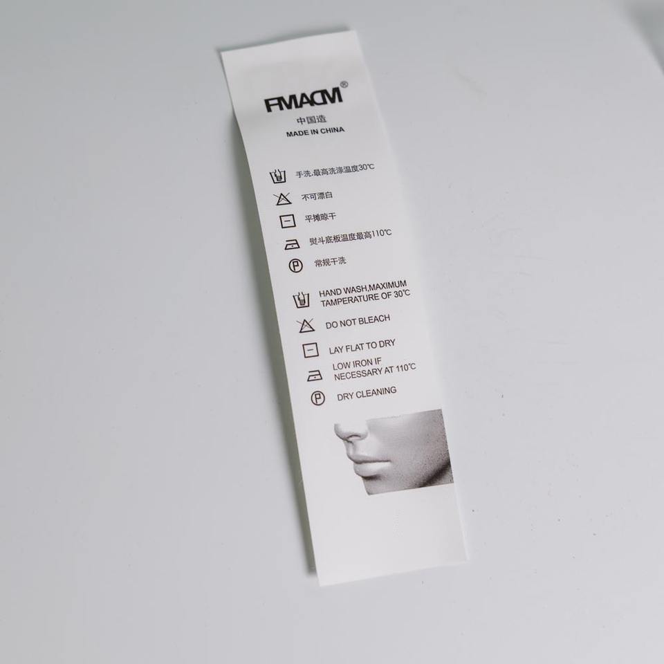 แท็กผ้าซาตินพิมพ์แบบกำหนดเองสำหรับเสื้อกางเกงและแจ็คเก็ต