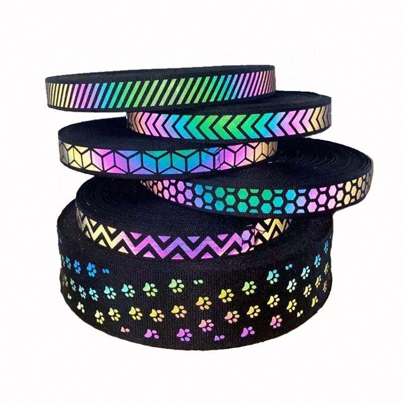 ชื่อผลิตภัณฑ์:สายรัดไนลอนแบนสะท้อนแสงสีรุ้งเงาพิมพ์ลายตามสั่ง