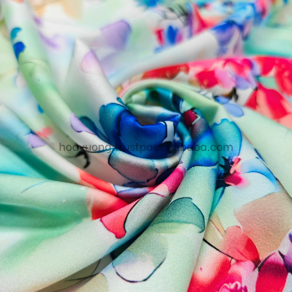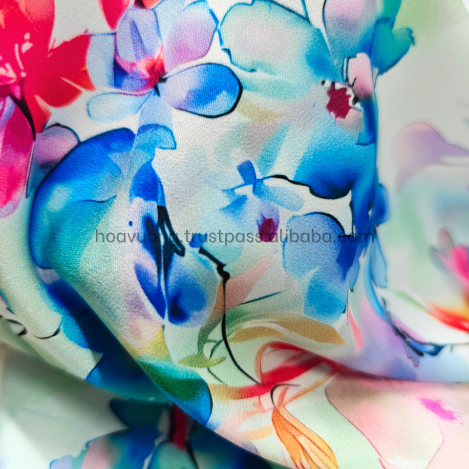 ผ้าไหมพิมพ์แบบกำหนดเองวัสดุละตินลายดอกไม้สำหรับชุดราตรีและชุดราตรี
