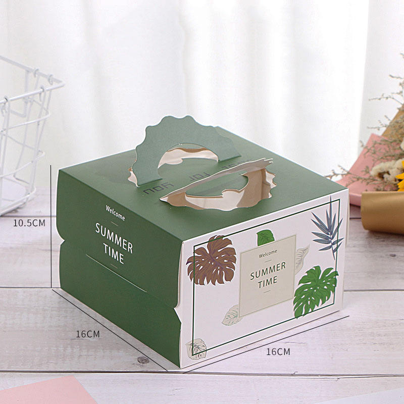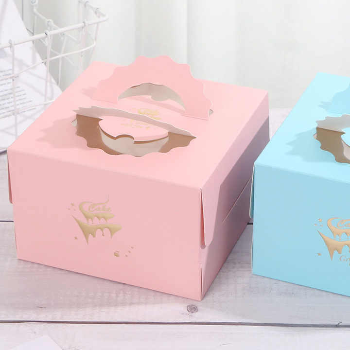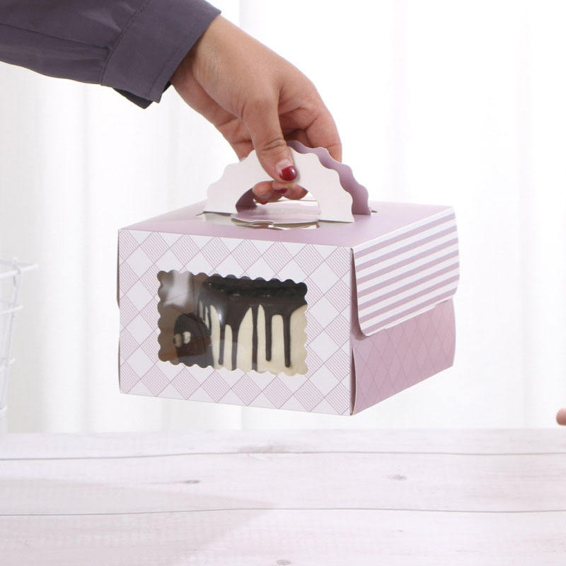 กล่องใส่เค้กชีสพิมพ์ลายขนาดกำหนดเองสำหรับบรรจุภัณฑ์เค้กวันเกิดพร้อมด้ามจับบรรจุภัณฑ์กระดาษคราฟท์ขนมมูส