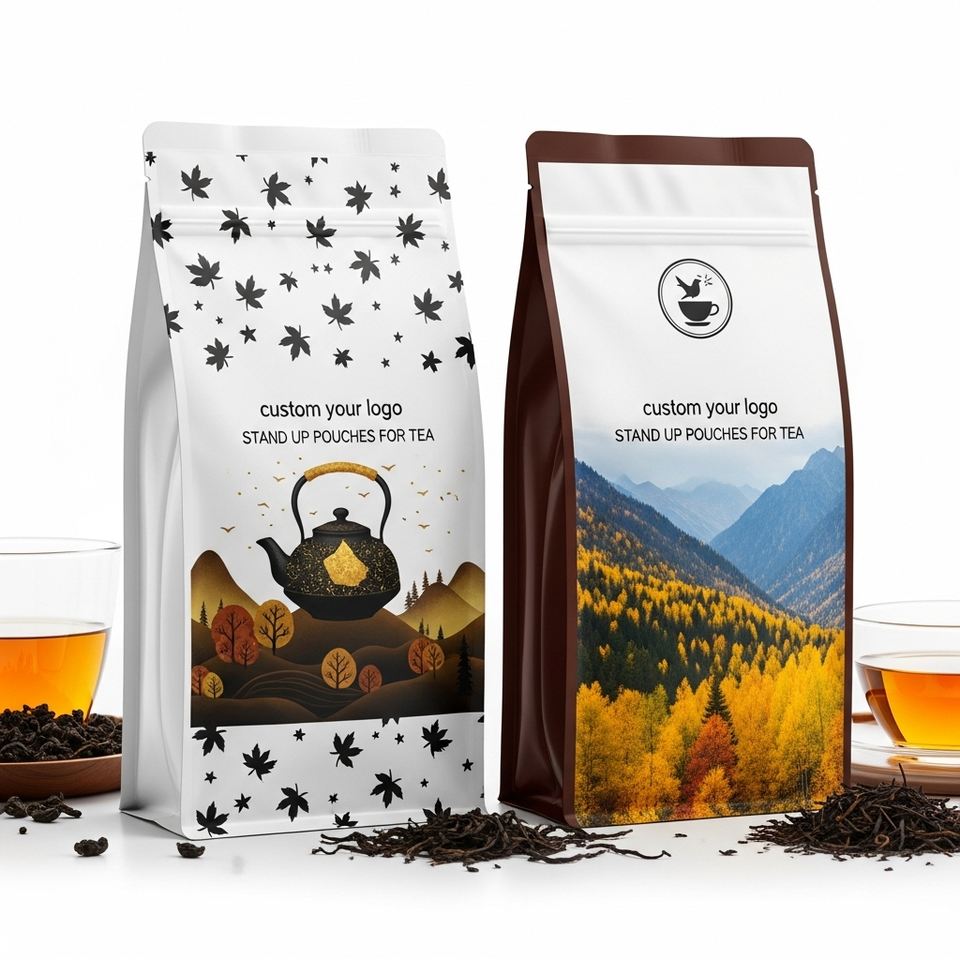 ถุงโดយแพ็คพิมพ์ลายตามสั่ง ป้องกันกลิ่น ผลิตจากอลูมิเนียมฟอยล์เคลือบอย่างดี สำหรับบรรจุชาใบ บรรจุภัณฑ์จากโรงงาน พร้อมขั้นต่ำในการสั่งซื้อน้อย
