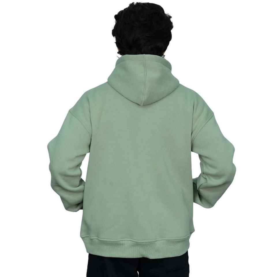 เสื้อฮู้ดดี้ผู้ชายผ้าสแปนเด็กซ์คอตตอนพิมพ์ลายตามสั่ง สไตล์วินเทจสีเขียวมิ้นท์ฟอกซัก ซิปยาวเต็มตัว ทรงโอเวอร์ไซส์