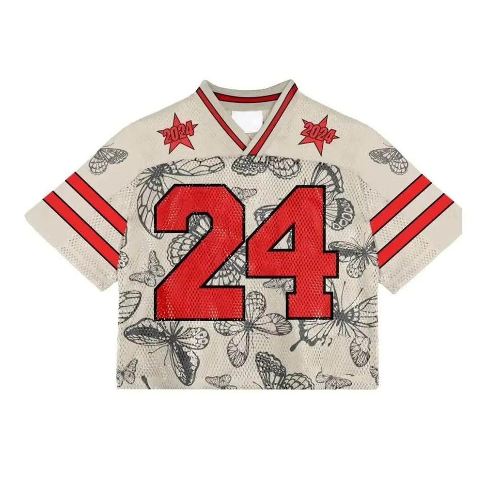 เสื้อเจอร์ซีย์อเมริกันฟุตบอลสตรีทแวร์พิมพ์ลายตามสั่ง ดีไซน์ครอปทันสมัย ผ้าตาข่ายระบายอากาศ พิมพ์ลายดิจิทัล โลโก้ ไซส์พลัส แห้งเร็ว