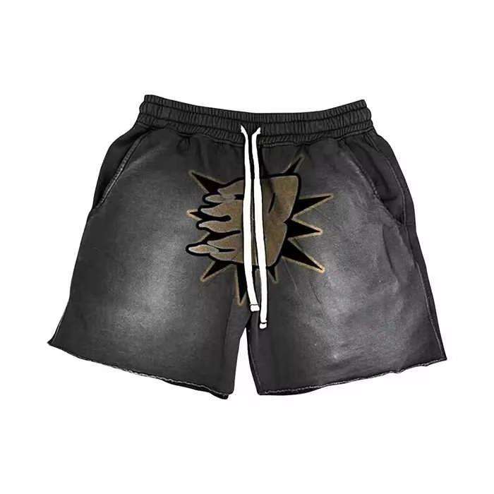Custom Printed Streetwear Men's Matching Sets 100% Cotton Sun Faded Men Summer T Shirt and Shorts 2 Piece Set With Solid Pattern