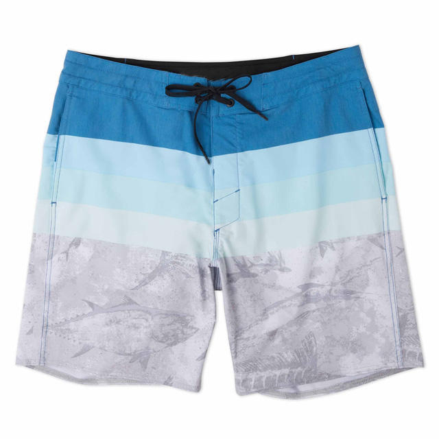 กางเกงขาสั้นตกปลาสำหรับผู้ชายกางเกงขาสั้นผ้าโพลีเอสเตอร์มีกระเป๋าพิมพ์ลายได้ตามต้องการ