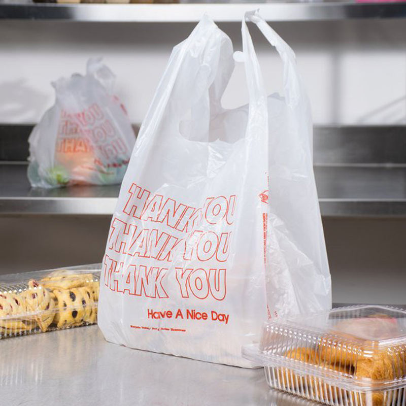 เสื้อยืดพิมพ์ลายขอบคุณสำหรับการช้อปปิงถุงพลาสติกกระเป๋าใส่เสื้อยืดขอบคุณ