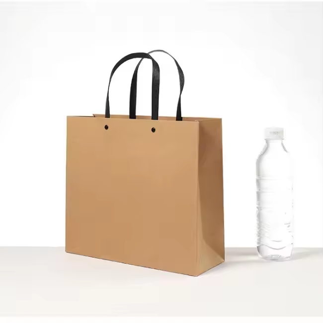 ถุงกระดาษช้อปปิ้งคราฟท์หนาพิมพ์ลายแบบกำหนดเองมีด้ามจับแข็งแรง