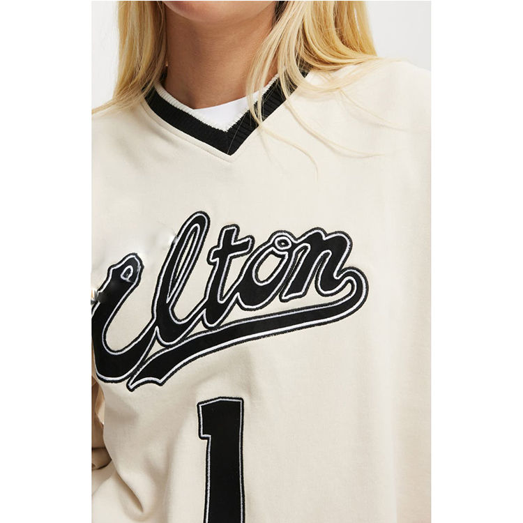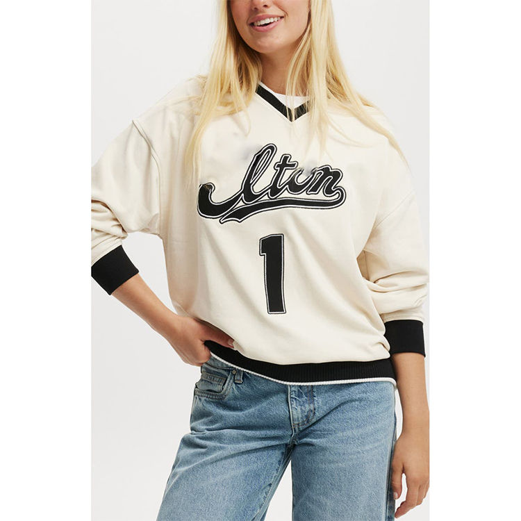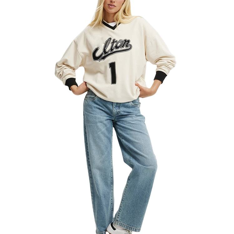 เสื้อสเวตเชิ้ตผู้หญิง แขนยาว คอวี ทรงหลวม พิมพ์ลายตามสั่ง ปักตัวอักษร สไตล์ลำลอง
