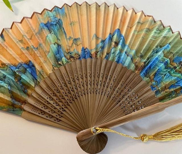 พัดไม้ไผ่พิมพ์ลายวินเทจแบบกำหนดเอง เป็นมิตรกับสิ่งแวดล้อม พับได้ เหมาะสำหรับงานแต่งงาน งานปาร์ตี้ หรือเป็นของขวัญวันเกิด