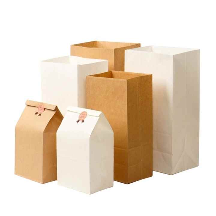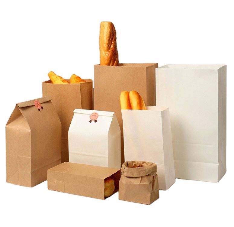ถุงกระดาษคราฟท์สีขาวพิมพ์ลายตามสั่งเกรดอาหารและกันการรีไซเคิลสำหรับบรรจุภัณฑ์ขนมปังปิ้งพร้อมโลโก้แบบกำหนดเอง