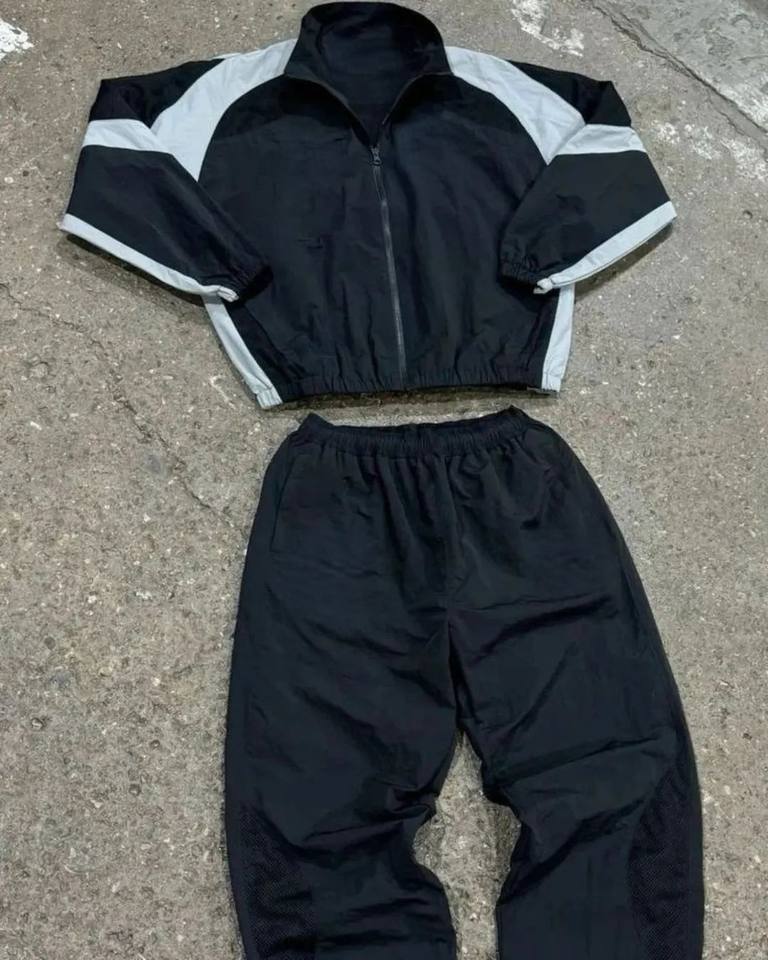 Custom Printed Wholesale Men's Two-Piece Nylon Polyester Zip-Up Tracksuit Windbreaker Set with Logo for Winter