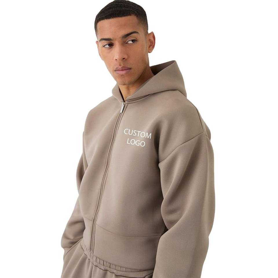 ชุดวอร์มสกูบาพิมพ์ลายตามสั่งสำหรับฤดูหนาว เนื้อผ้าหนานุ่ม ระบายอากาศได้ดี ชุดออกกำลังกายทันสมัย เสื้อฮู้ดครอปทรงหลวมพร้อมซิป กางเกงขาสั้น