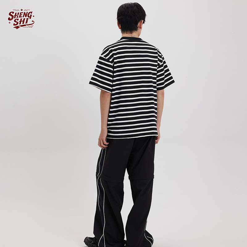 ยูนิฟอร์มคอกลมแขนสั้น250g ระบายอากาศได้ดีสำหรับการเดินทางแบบวินเทจเปิดไหล่ตกผ้าฝ้าย100%