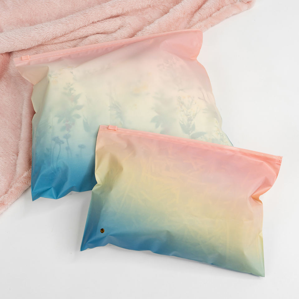 ถุงพลาสติกซิปล็อคแบบไล่สีพิมพ์โลโก้ตามสั่ง ถุงซิปแบบฝ้าสำหรับเสื้อผ้าและเสื้อยืด