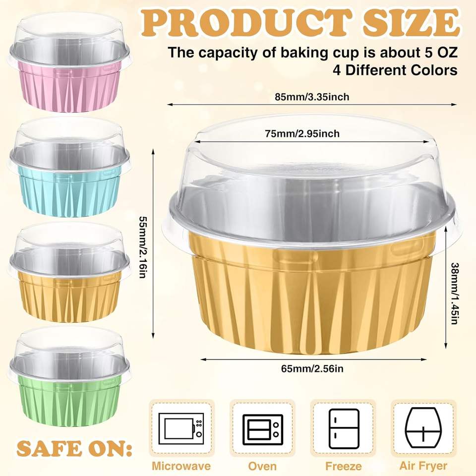 พิมพ์ลายตามสั่ง ถาดอบคัพเค้กขนาด 4.2 ออนซ์ ถาดมัฟฟิน แพ็ค 2000 ชิ้น ถ้วยอบขนมอลูมิเนียมฟอยล์ขนาดเล็ก พร้อมฝาโดม สำหรับคริสต์มาส