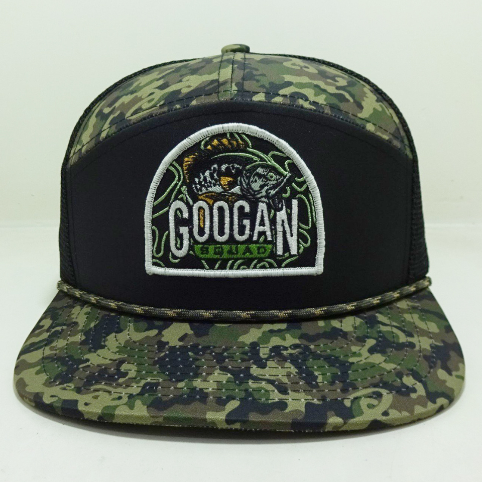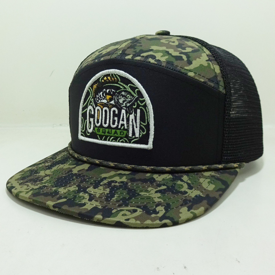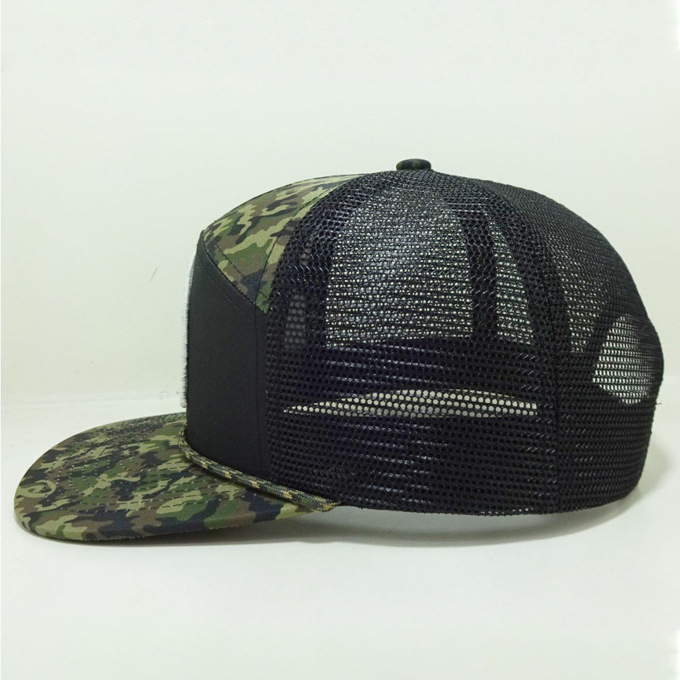 หมวกสแนปแบคลายพรางหมวกแบบมีเชือก7แผงหมวกแบบเย็บปักออกแบบได้ตามต้องการหมวกปีกแบนสำหรับล่าสัตว์