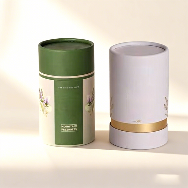 หลอดกระดาษแข็งทรงกระบอกสำหรับบรรจุภัณฑ์กาแฟ ชาเขียว แบบพิมพ์ลายตามสั่ง ดีไซน์งานฝีมือ พร้อมเคลือบโฮโลแกรมสีขาว