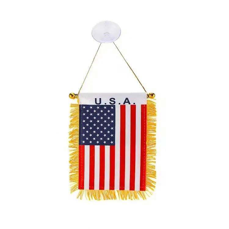 ธงชาติขนาดเล็กแบบพิมพ์ลายเองสองด้าน พร้อมพู่ห้อยสำหรับตกแต่งกระจกมองหลังรถยนต์