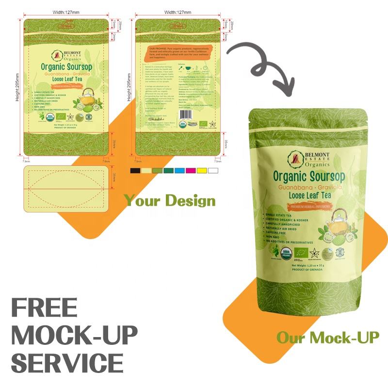ถุงบรรจุภัณฑ์ขนมหวานวานิลลาแบบแข็ง พิมพ์ลายได้ตามต้องการ ปิดผนึกด้วยความร้อน เคลือบกันความชื้น แบบตั้งได้