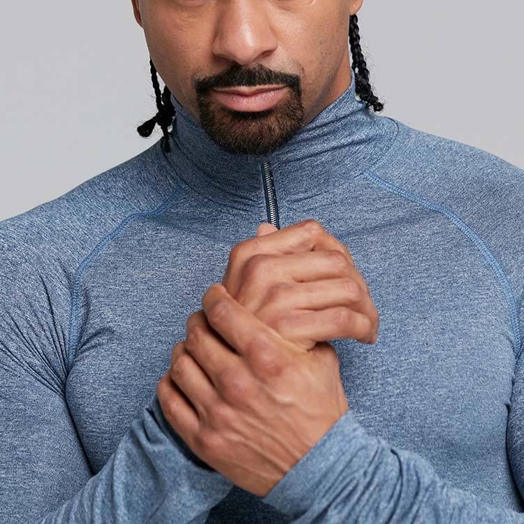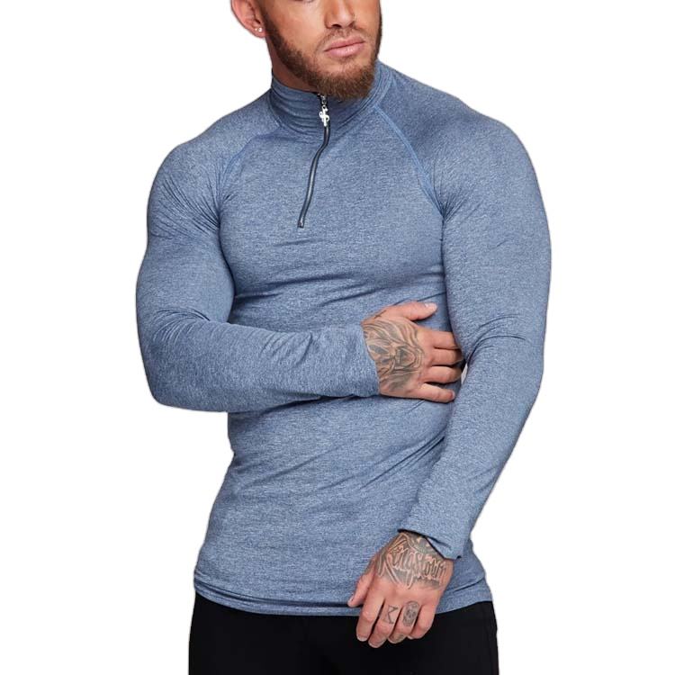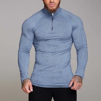 เสื้อยืดออกกำลังกายผู้ชายผ้าสแปนเด็กซ์ระบายอากาศได้ดี พิมพ์ลายตามสั่ง รับผลิตแบบ OEM ไซส์ใหญ่ คอกลม แห้งเร็ว แขนยาว