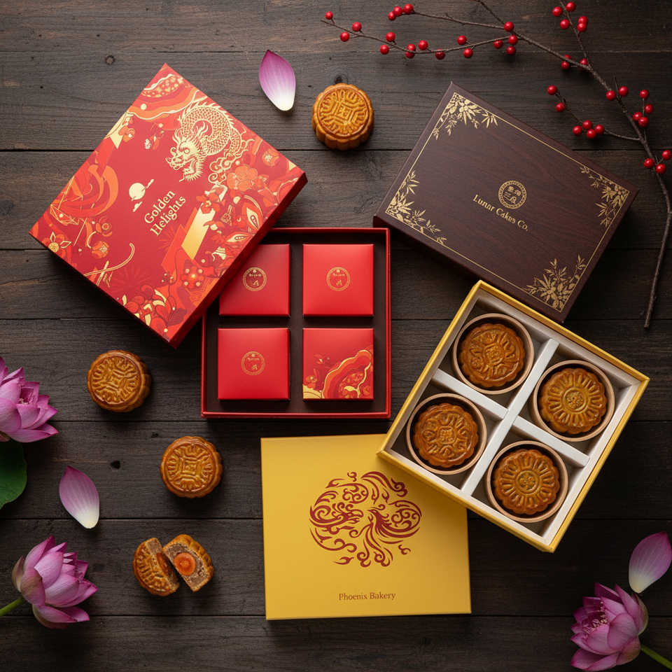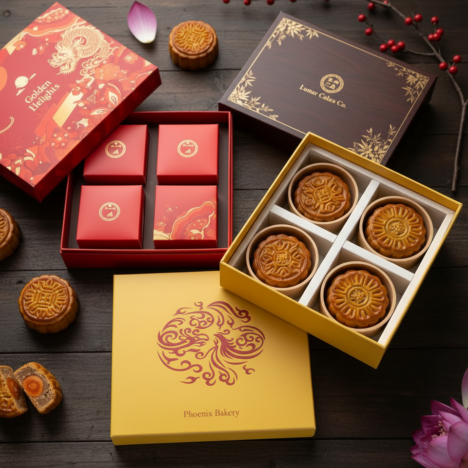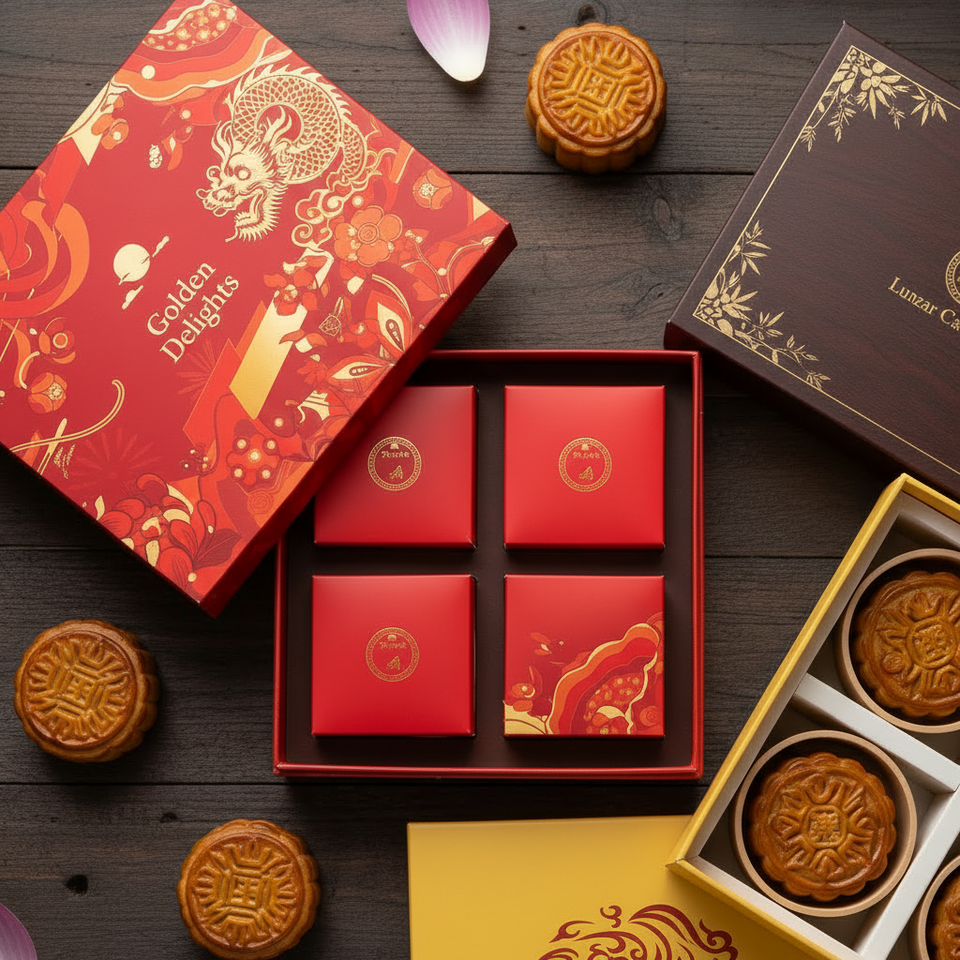 กล่องพิมพ์ลายตามสั่ง กล่องของขวัญเทศกาลไหว้พระจันทร์สุดหรู พร้อมกระดาษอาร์ตแบบนูนลาย
