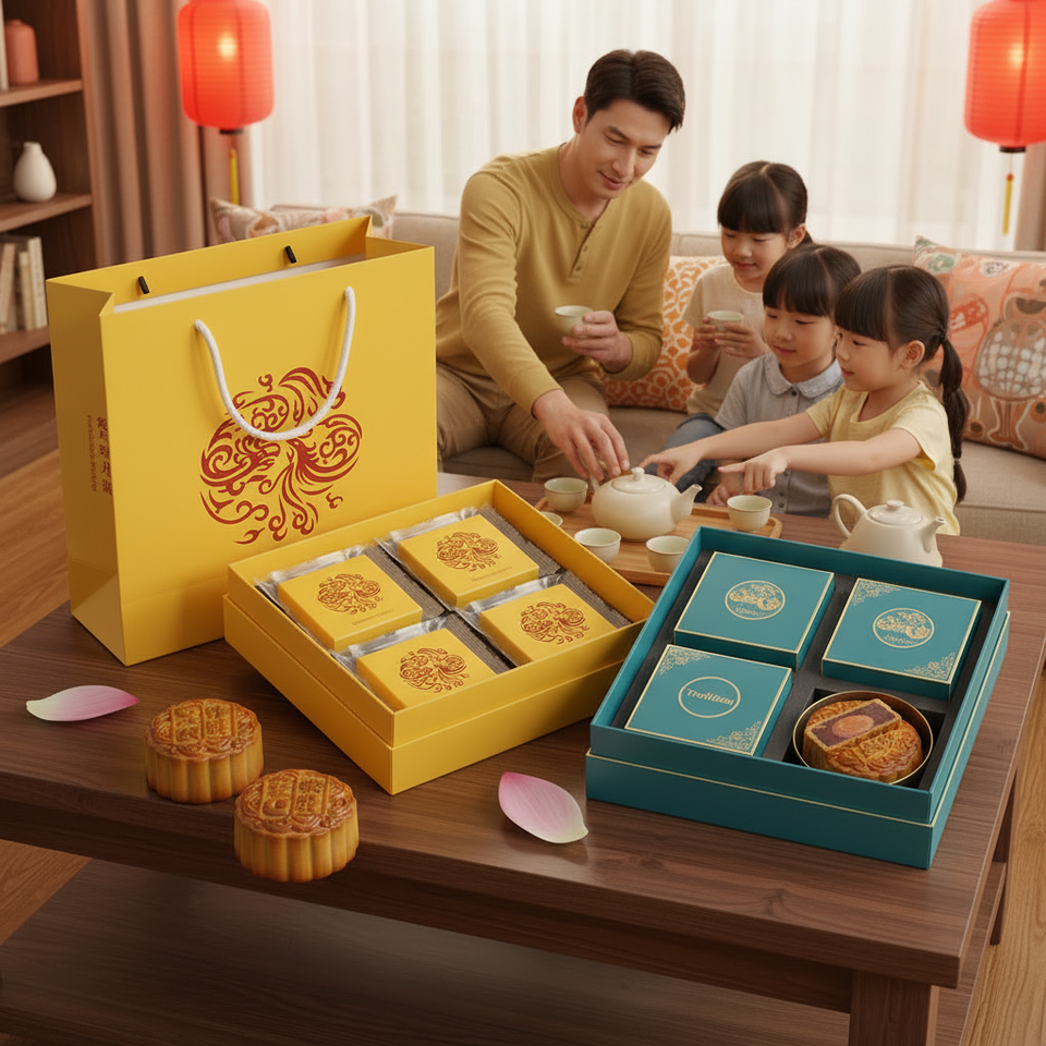 กล่องของขวัญขนมไหว้พระจันทร์เทศกาลไหว้พระจันทร์กลางฤดูใบไม้ร่วง พิมพ์ลายตามสั่ง กล่องแบบส่วนตัว พร้อมฝาปิดแม่เหล็กและตกแต่งอย่างหรูหรา