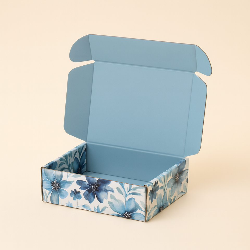 กล่องไปรษณีย์กระดาษลูกฟูกเคลือบด้าน พิมพ์ลายตามสั่ง วัสดุรีไซเคิล ปั๊มฟอยล์ทอง