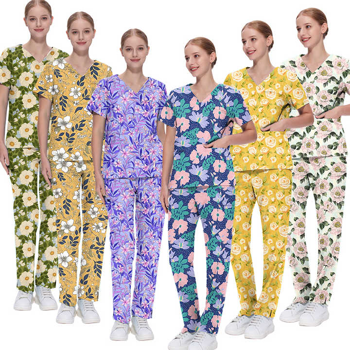 เสื้อยืดผู้หญิงแขนสั้นคอวีใส่ทำงานเสื้อพยาบาลมีกระเป๋าเสื้อยืดสครับเสื้อยืดพิมพ์ลาย3D ออกแบบได้ตามต้องการ