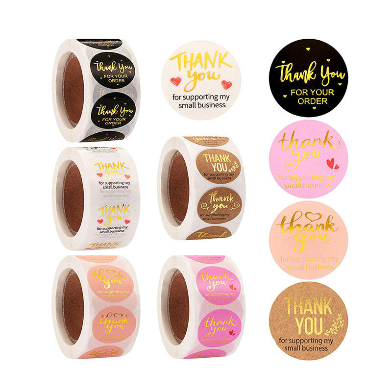 สติกเกอร์สีทรงกลมขนาด38มม. ฉลากขอบคุณพิมพ์โลโก้ตามสั่ง