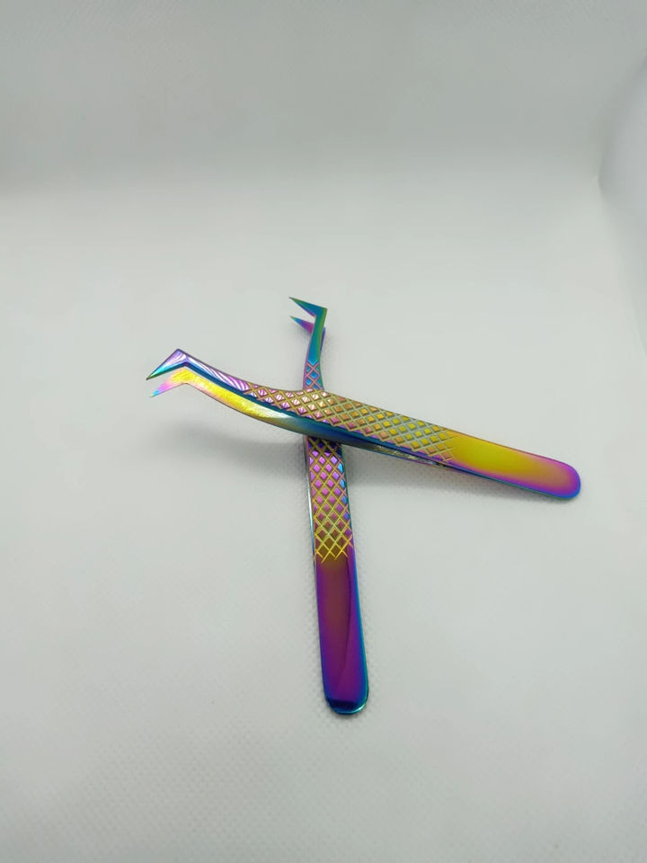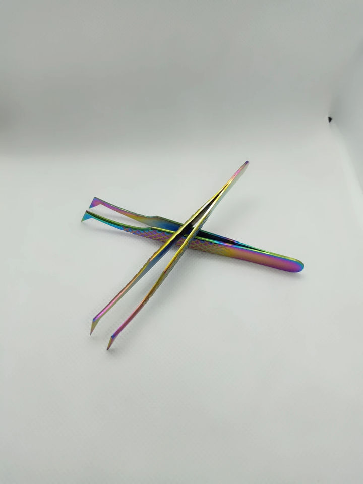 แหนบต่อขนตาสแตนเลสแบบนาโนกริป 45 90 องศา สำหรับต่อขนตา พร้อมโลโก้พิมพ์ลายธง รับผลิตแบรนด์ส่วนตัว