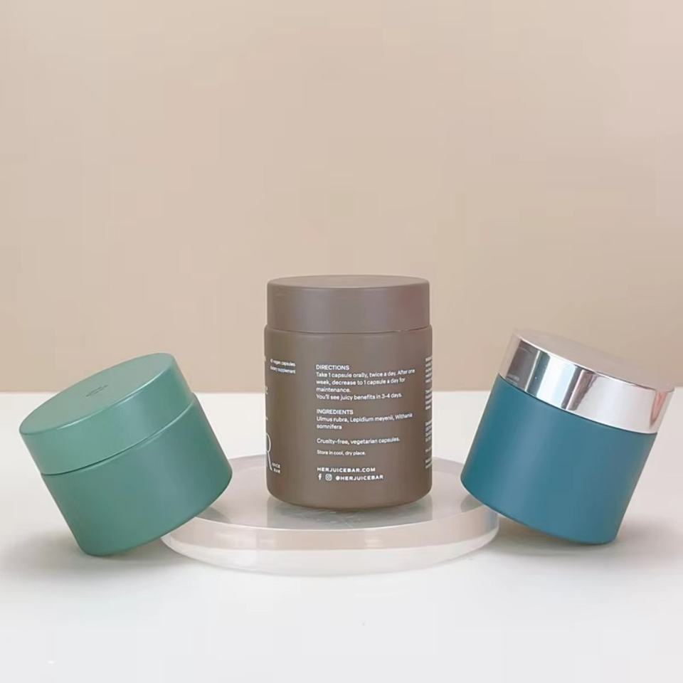 ขวดแก้วเครื่องสำอางสีสันสดใส ขนาด 50 มล. 50 กรัม สีชมพู เขียว เหลือง สำหรับผลิตภัณฑ์บำรุงผิวแบบกำหนดเองและติดฉลากส่วนตัว