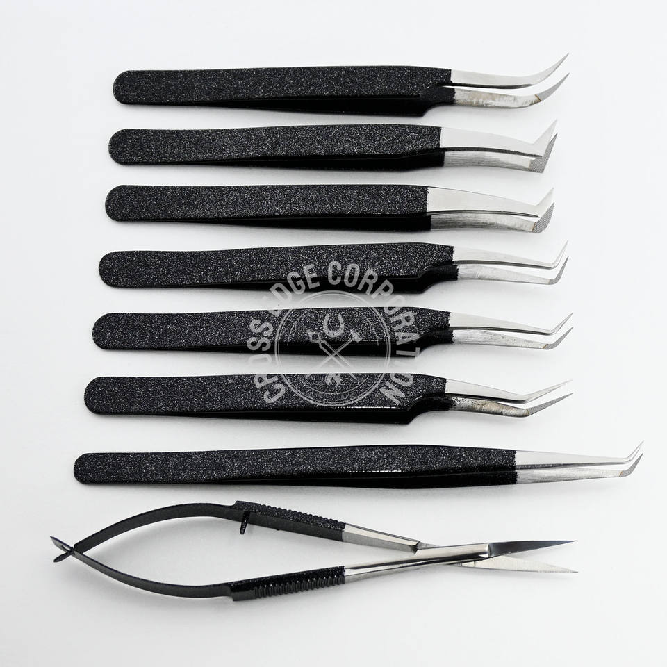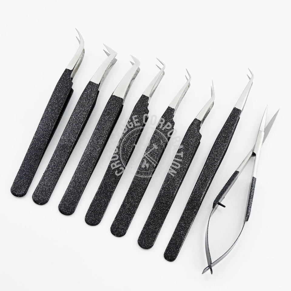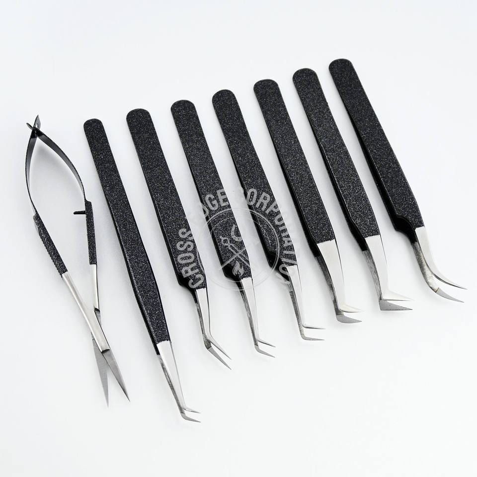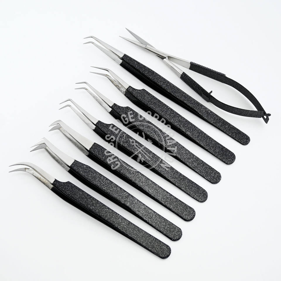 แหนบเครื่องมือเสริมสวย ต่อขนตา, ข้อศอก, กรรไกร, ปลายแหลม, ปลายเอียง, ปลายมน