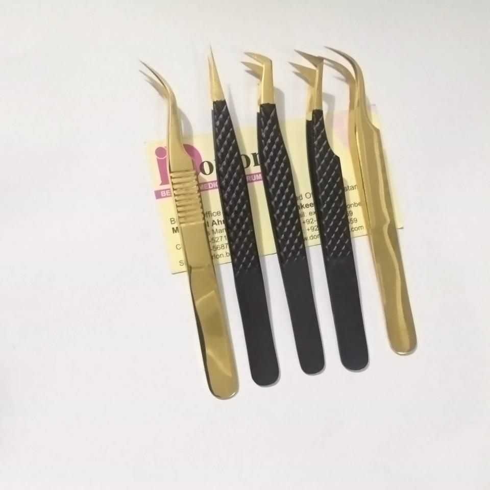Custom Private Label Gold Plated & Black Eyelash Tweezers Stainless Steel Diamond Grip Lash Tweezers For Eyelash Extension