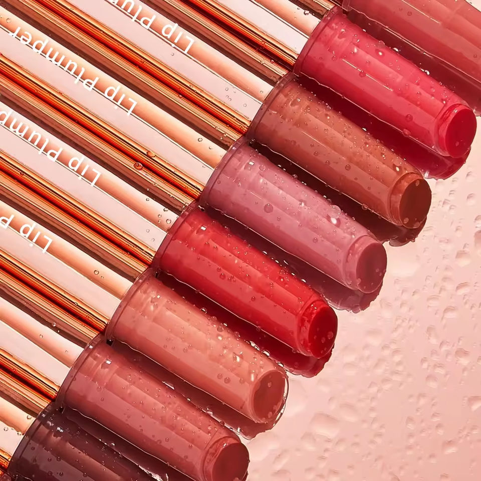 ลิปกลอสเพิ่มความอวบอิ่มสีชมพูแบบกำหนดเองสำหรับแบรนด์ส่วนตัว ลิปบาล์มคุณภาพสูง บำรุงริมฝีปากชุ่มชื้น สูตรวีแกน สีสวยฉ่ำวาว