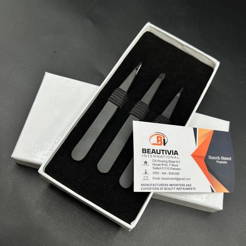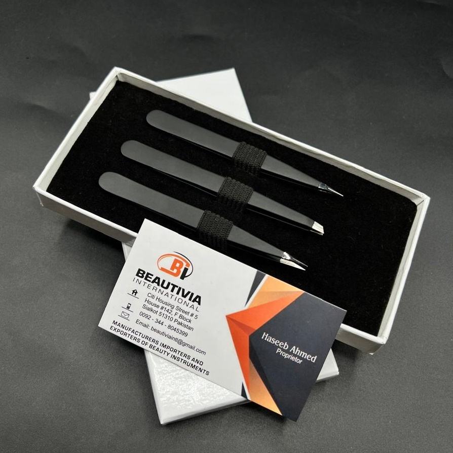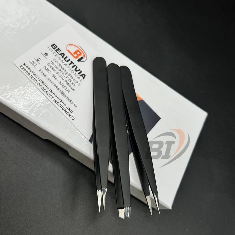 Custom Private Label Stainless Steel Slanted Pointed Tip Eyebrow Tweezers Brow Shaping Beauty Cosmetic Tool Beautivia