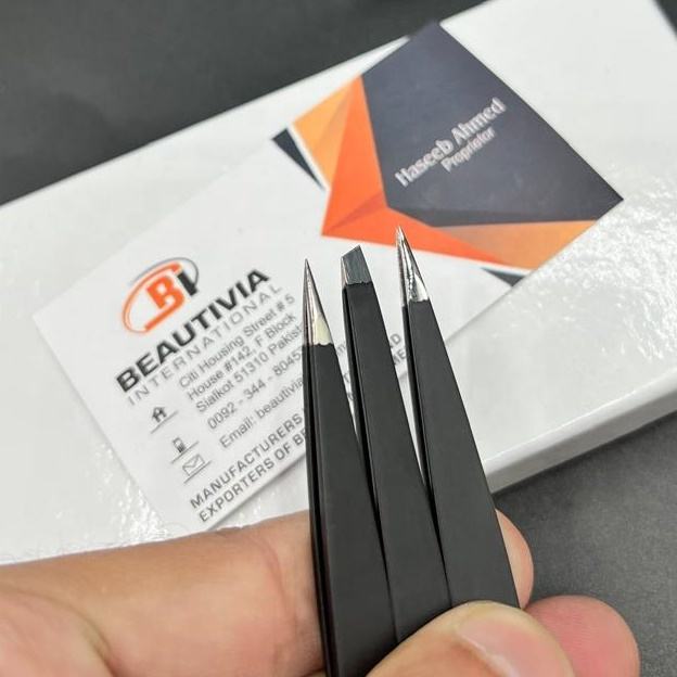 แหนบคิ้วปลายแหลมแบบเอียงทำจากสเตนเลสสตีลอุปกรณ์เสริมความงามสั่งทำฉลากส่วนตัวได้