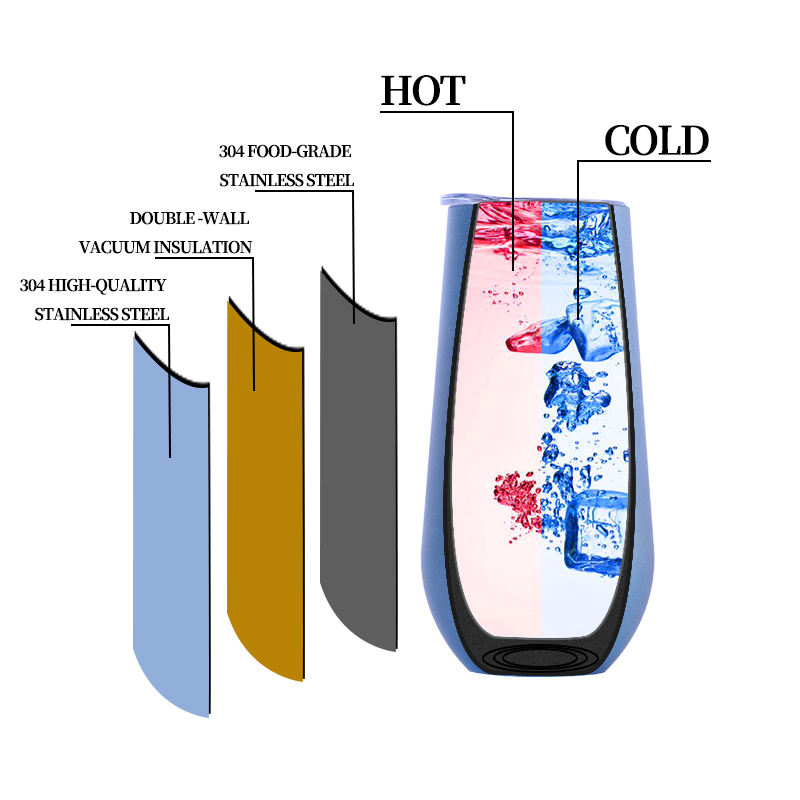 แก้วมักเก็บความร้อน6ออนซ์ผนังสองชั้นแบบไม่มีหูแก้วแชมเปญสแตนเลสแก้วมักสั่งติดป้ายได้ตามต้องการ