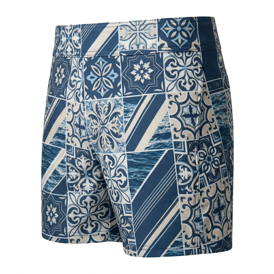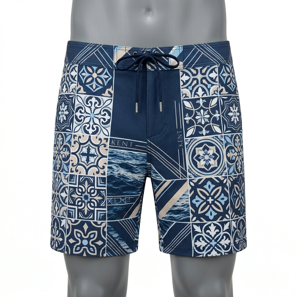 กางเกงชายแบบกลับด้านได้ ยืดได้ 4 ทิศทาง แห้งเร็ว พิมพ์ลายแบบซับลิเมชั่น ซิปหน้า 100% โพลีเอสเตอร์ ความยาวระดับเข่า เหมาะสำหรับชายหาด ยิม และเล่นกระดานโต้คลื่น